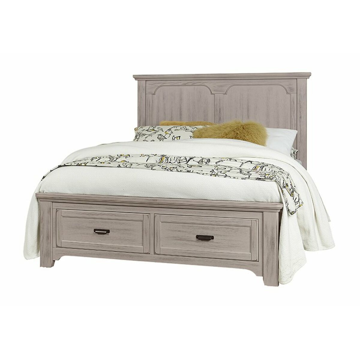 Functional storage drawers in the panel bed’s low profile platform style footboard make this bed useful and stylish. Use the handy drawer space for clothing, linens, or accessories. For every tree used in the making of furniture at Vaughan Bassett, they donate a tree to be planted by the Virginia Department of Forestry Made in the USA Made of North American hardwood solids and hand selected oak veneers