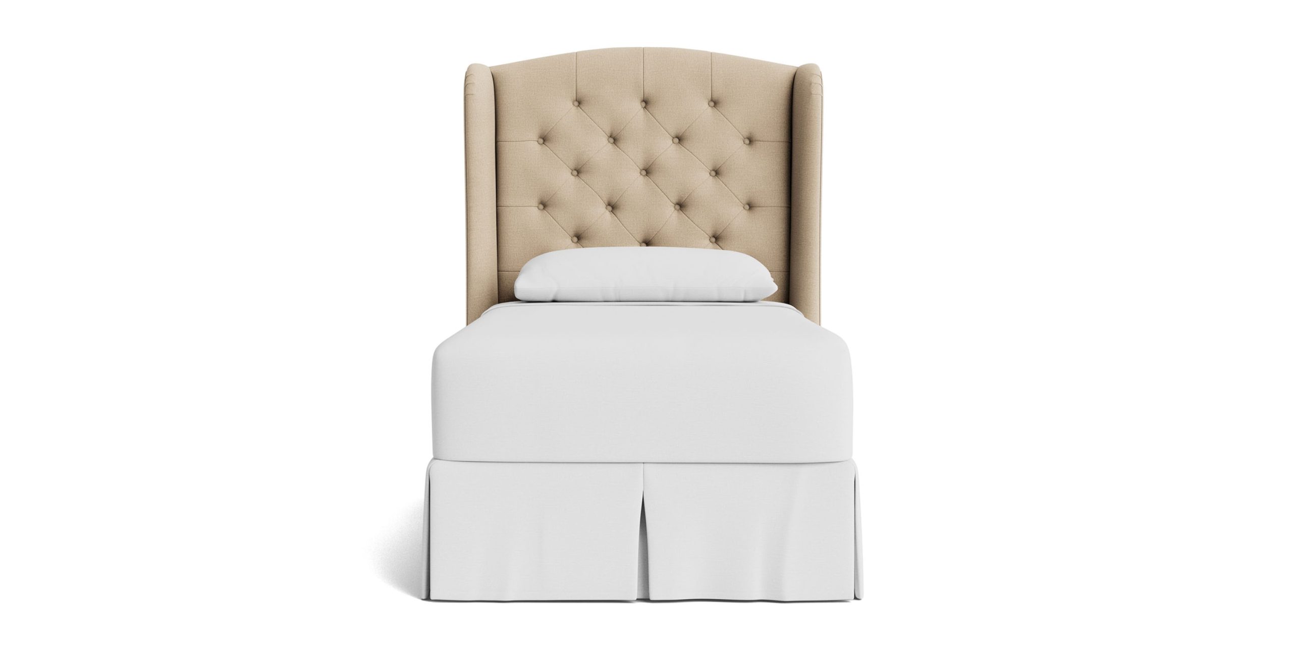 Lean into the classic curves, decorative wings, and tufted texture of the Paris Tufted Upholstered Bed. Customize your regally upholstered bed with your choice of designer fabric, creating a modern throne of repose. You can choose a complete bed frame or just the headboard. If you opt for a complete bedframe, you can then select your preferred style of wood leg – tapered or turned. The elegant Paris is available in 5 sizes, from Twin to California King. Please note: When ordering a complete bed frame, you may need longer rails to accommodate an Adjustable Base. Compare the dimensions of your base to the interior dimensions of the upholstered bed frame or contact our Customer Service if you’d like assistance.