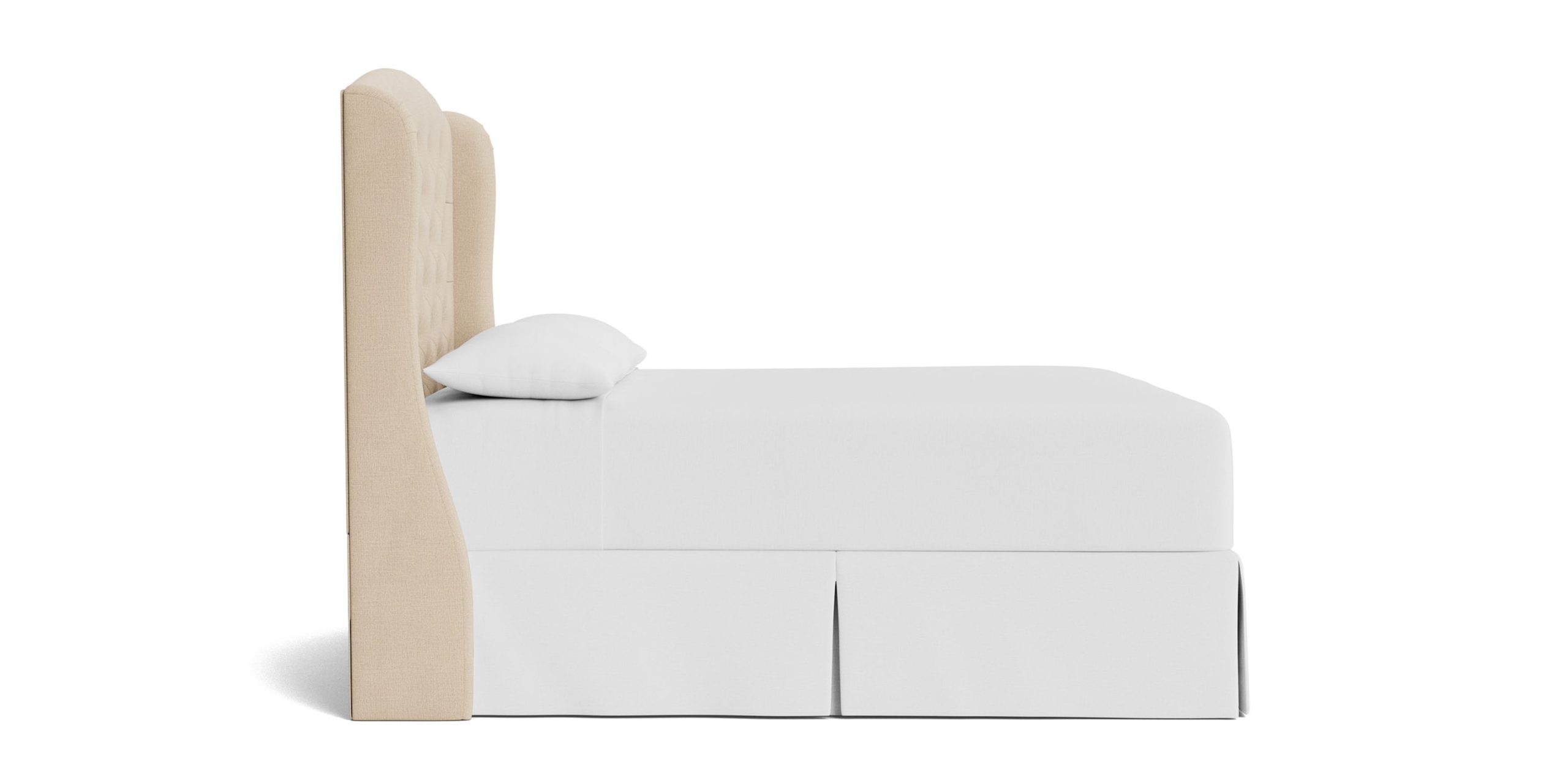 Lean into the classic curves, decorative wings, and tufted texture of the Paris Tufted Upholstered Bed. Customize your regally upholstered bed with your choice of designer fabric, creating a modern throne of repose. You can choose a complete bed frame or just the headboard. If you opt for a complete bedframe, you can then select your preferred style of wood leg – tapered or turned. The elegant Paris is available in 5 sizes, from Twin to California King. Please note: When ordering a complete bed frame, you may need longer rails to accommodate an Adjustable Base. Compare the dimensions of your base to the interior dimensions of the upholstered bed frame or contact our Customer Service if you’d like assistance.