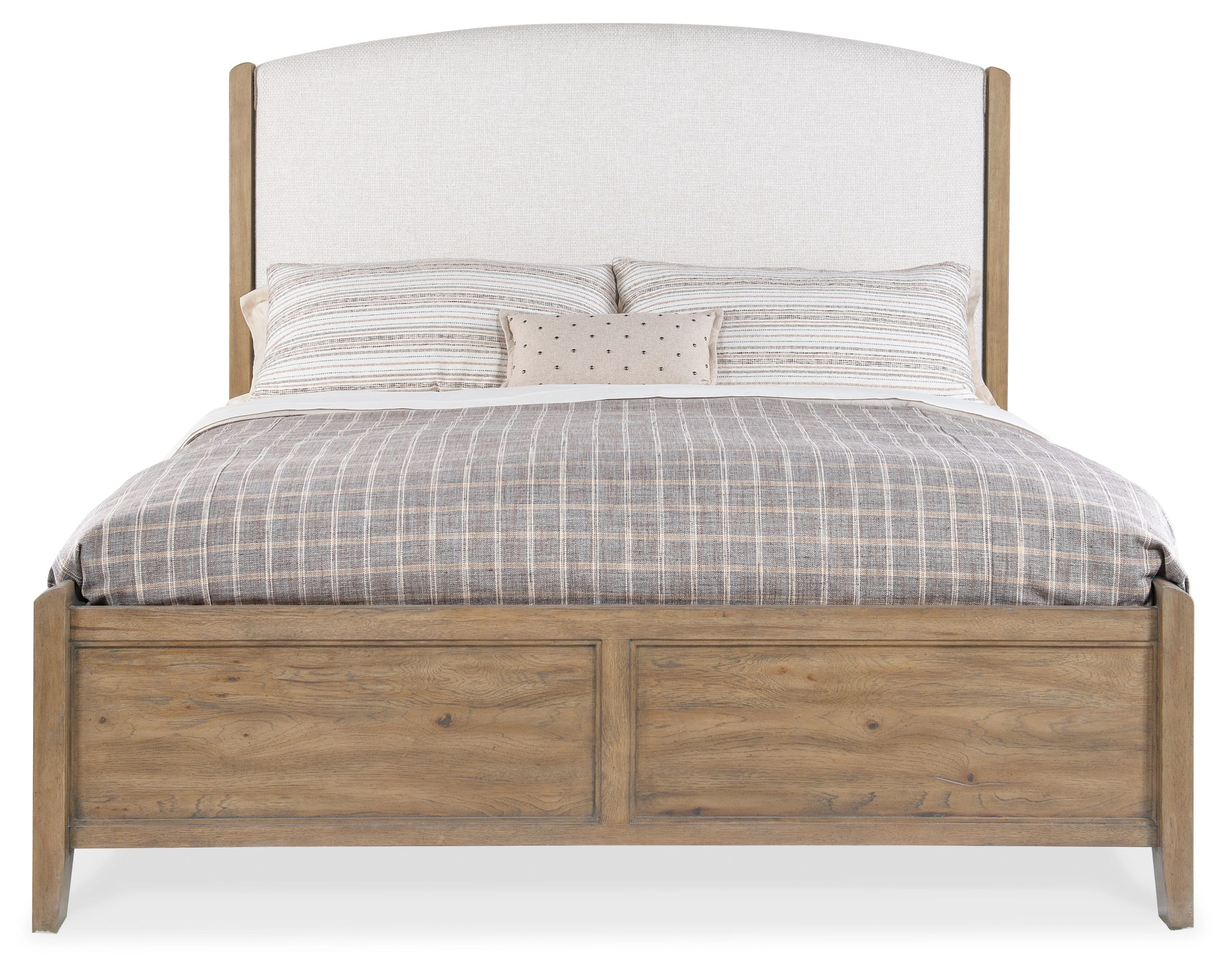 | Queen sizeFabric upholstered headboardWood footboard and railsFinish: Sonoma: a light and airy vibe, reminiscent of the crisp white wines of the Sonoma regionDistressed Finished: Wire brushing | Yes |