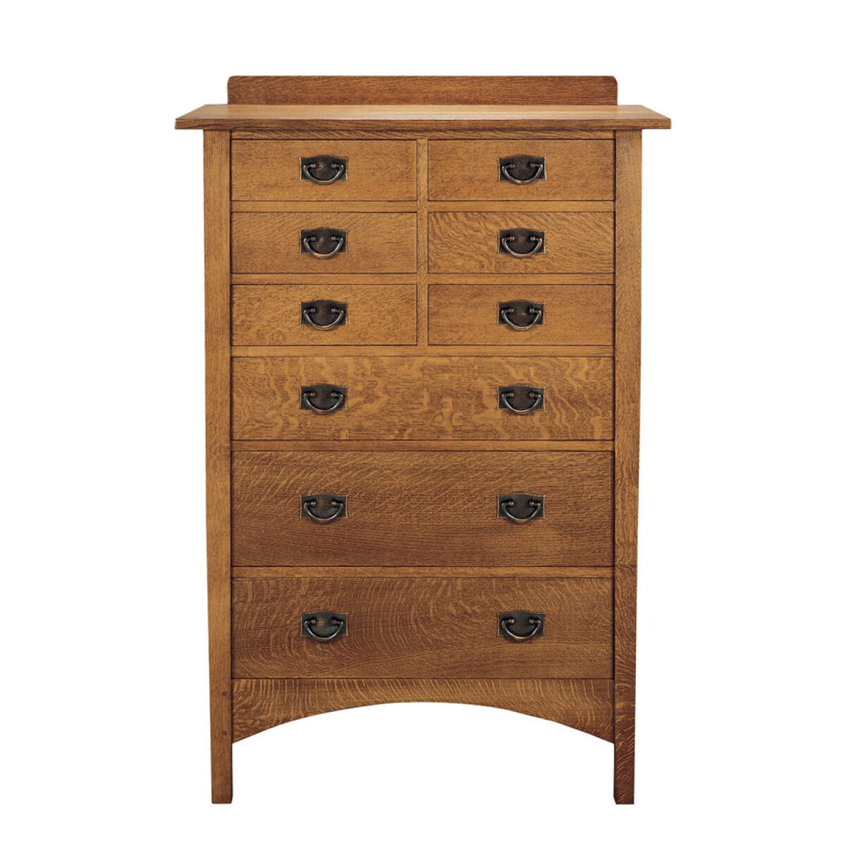 Based on a chest designed by Harvey Ellis while working for Gustav Stickley circa 1902, the tall, narrow Nine-Drawer Chest offers space-saving storage within a handsome Mission profile. Available in solid quartersawn white oak with a 2 1/2-inch gallery or in solid cherry with either cherry or curly maple drawer fronts.