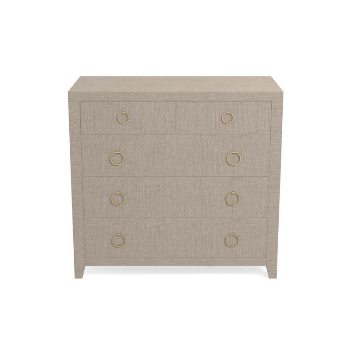 The versatile Ventura chest dazzles as a bedside table or an end table. You’ll love the clean lines wrapped in unexpected raffia texture, and modern satin brass ring pull. Choose Pacific Blue or Sand Grey to add a pop of color or an attractive neutral texture. Taking its cue from neo-traditional design with a modern twist, Bassett Furniture’s Ventura collection combines crisp finishes and colors. Select pieces feature raffia wrapped cases and tables which add unexpected texture to the collection. Shell White, Brandy and Chalk Slate in stained elm. Raffia cases in Pacific Blue and Sand Gray. Choose from a chest, nightstand, bedside table, upholstered bed, chairside table, end/bedside table, credenzas, console tables, and more.