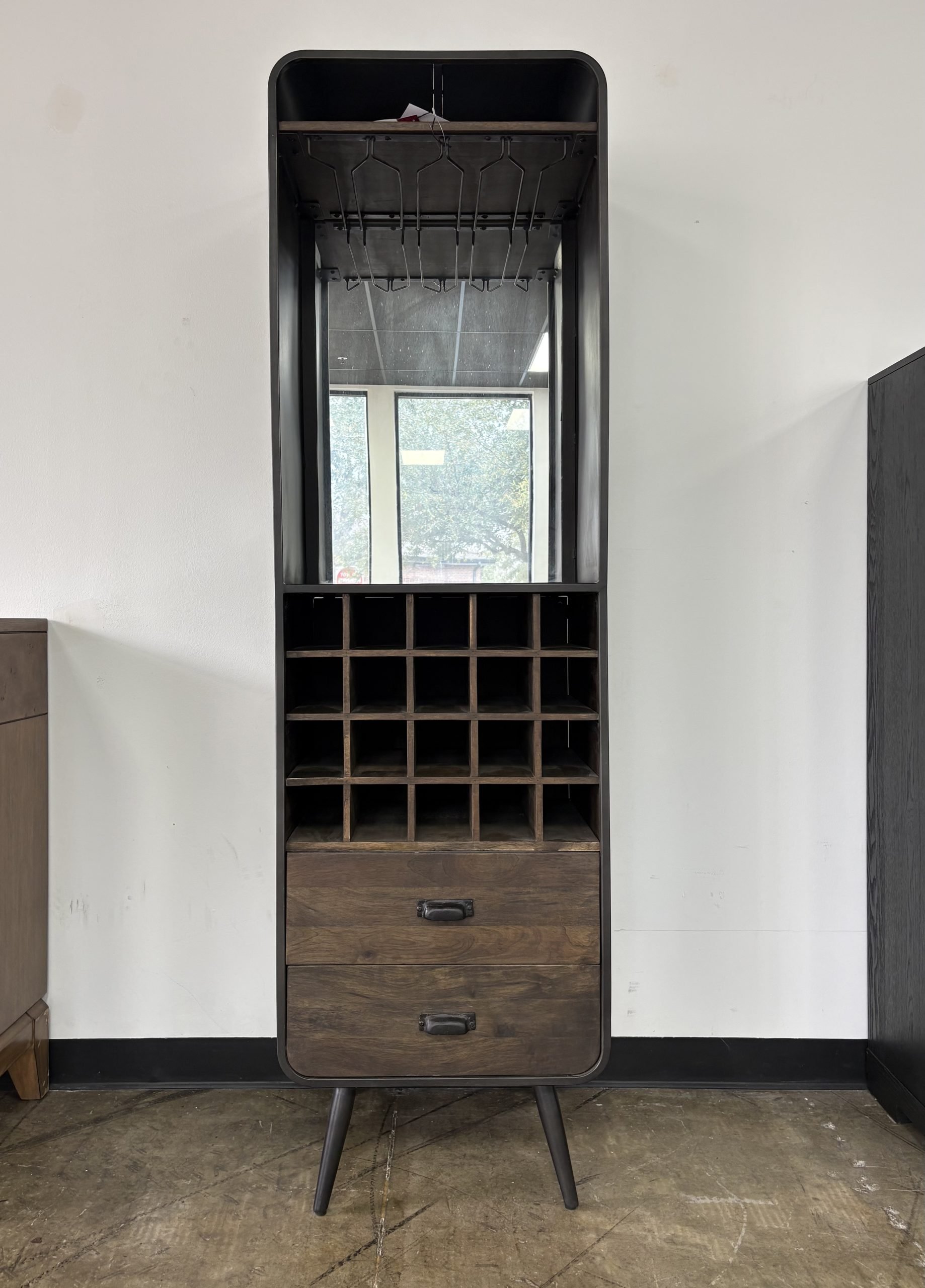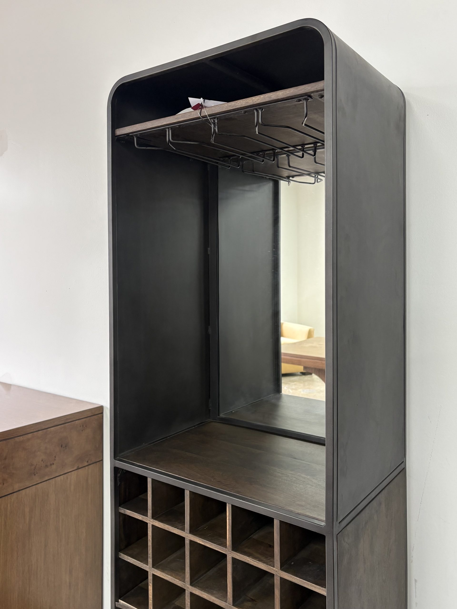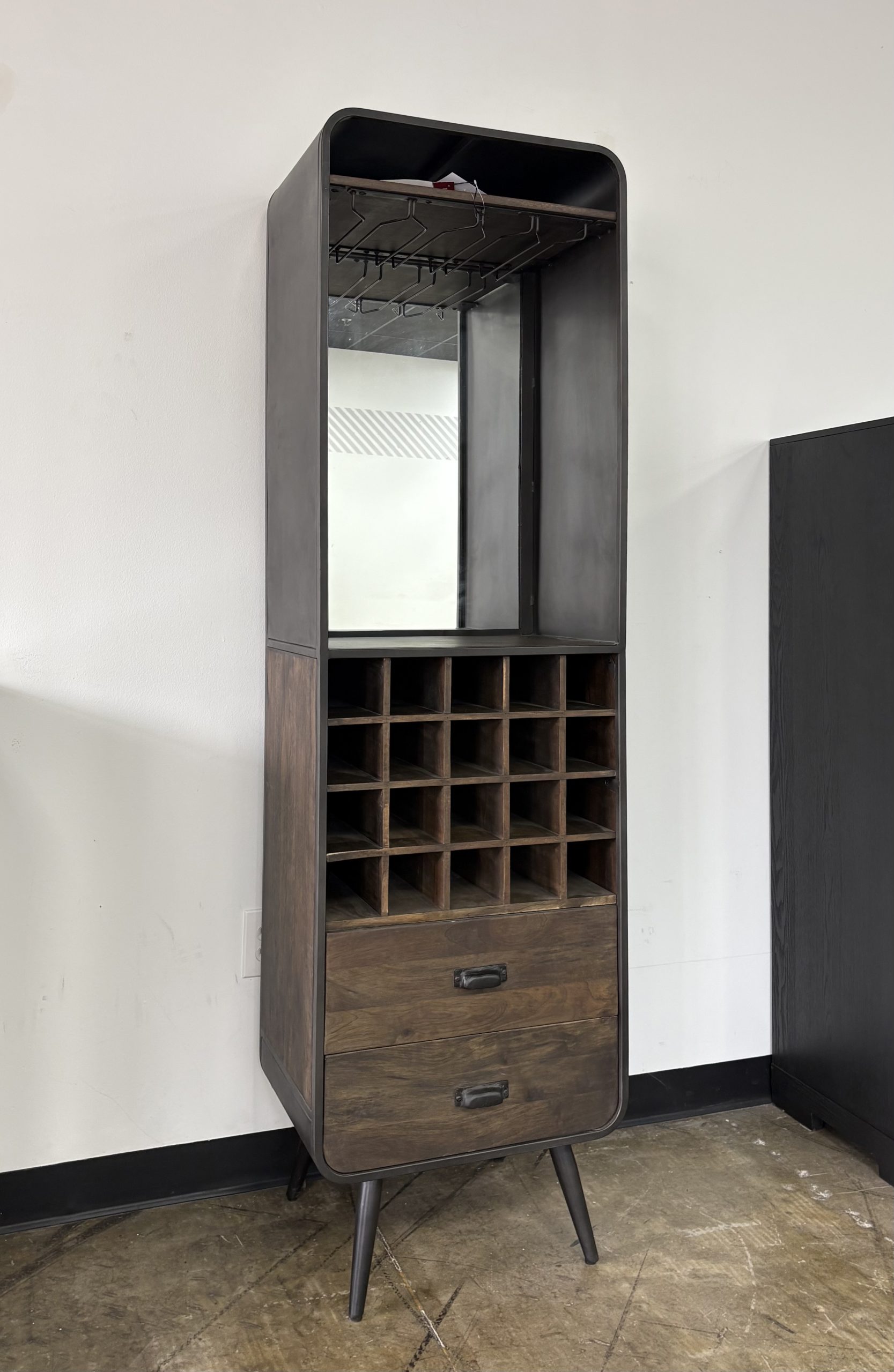 Storing your wine, liquor, and barware is about more than practicality. Enjoy the stunning elegance of this Howard Miller wine and bar cabinet. Careful Craftsmanship: This metal bar cabinet is finished in an aged iron and includes solid wood accents finished in rustic hardwood. The carefully crafted wine cabinet offers an aged appearance, adding a rustic but beautiful touch to any space