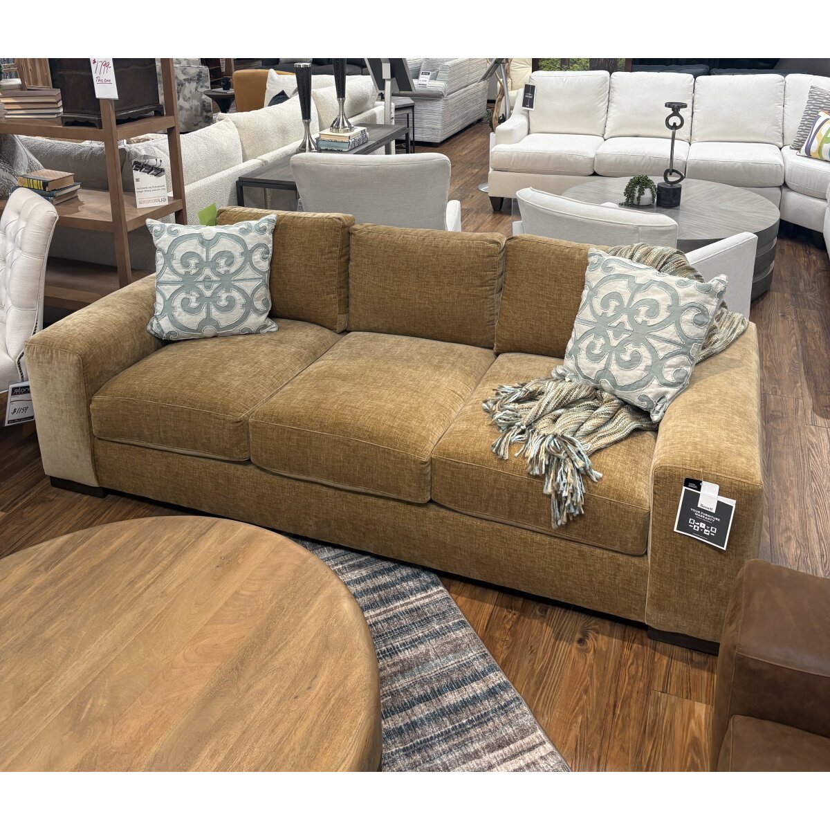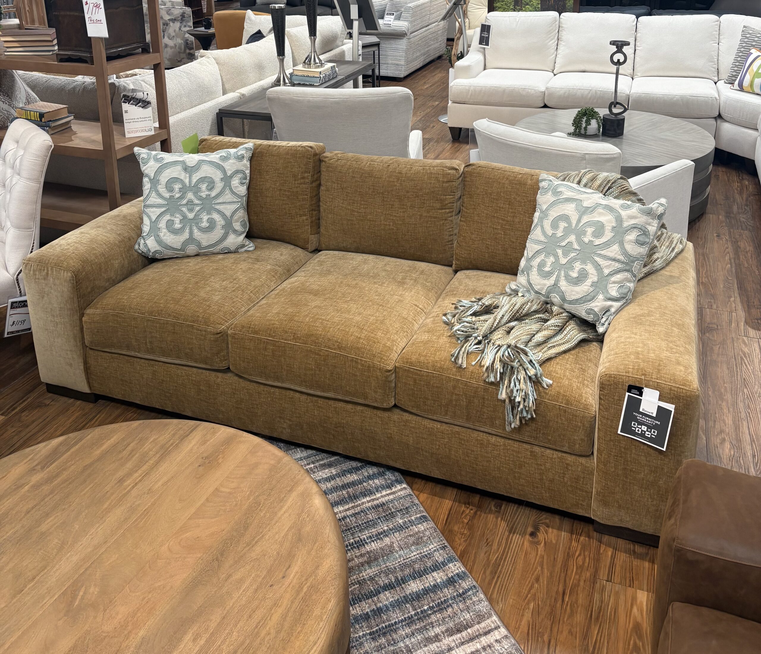 Bassett’s Southpark Sofa is so secure in its identity that it still gives you every custom choice you could ever desire while staying true to its style spirit. With this statement sofa, itself anchored on 2” tall block legs in a brindle finish. The Southpark’s thick seat and back cushions are loose, allowing for rotation and even wear on a sofa that beckons everyone, every day, to its comfort zone.