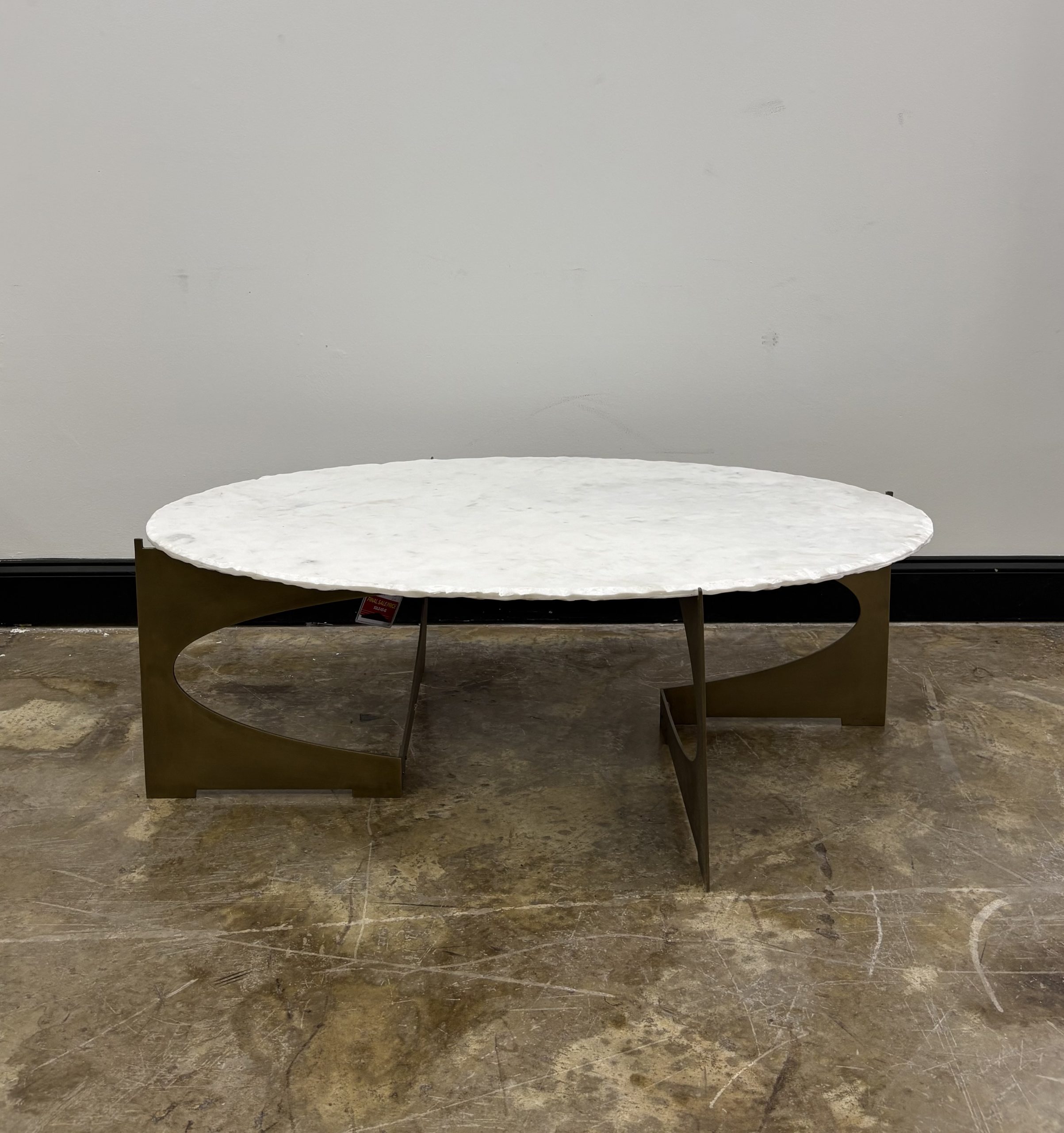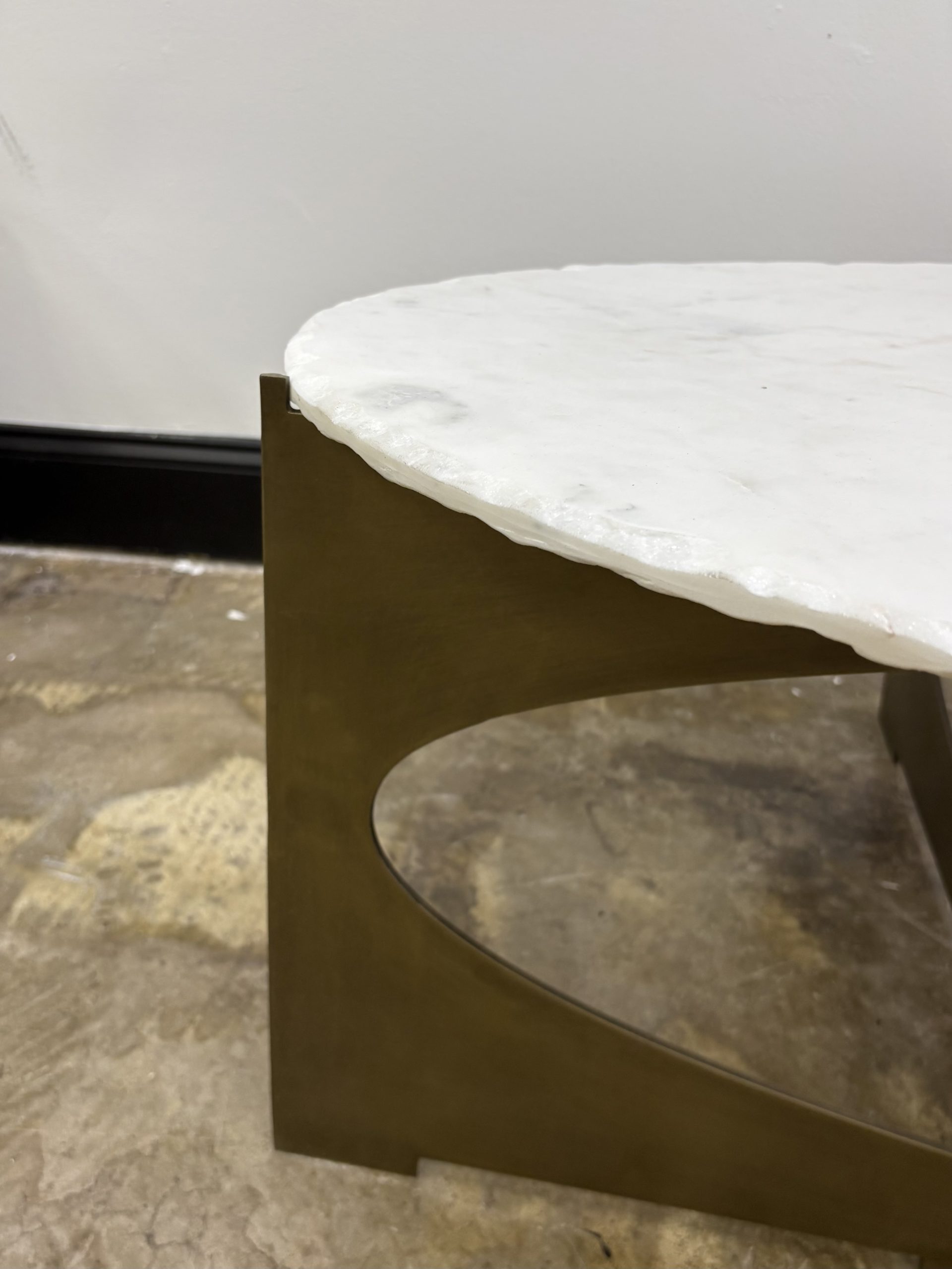 Marble and gold unite in an oval coffee table with interesting side profiles