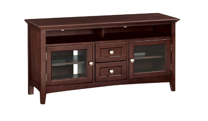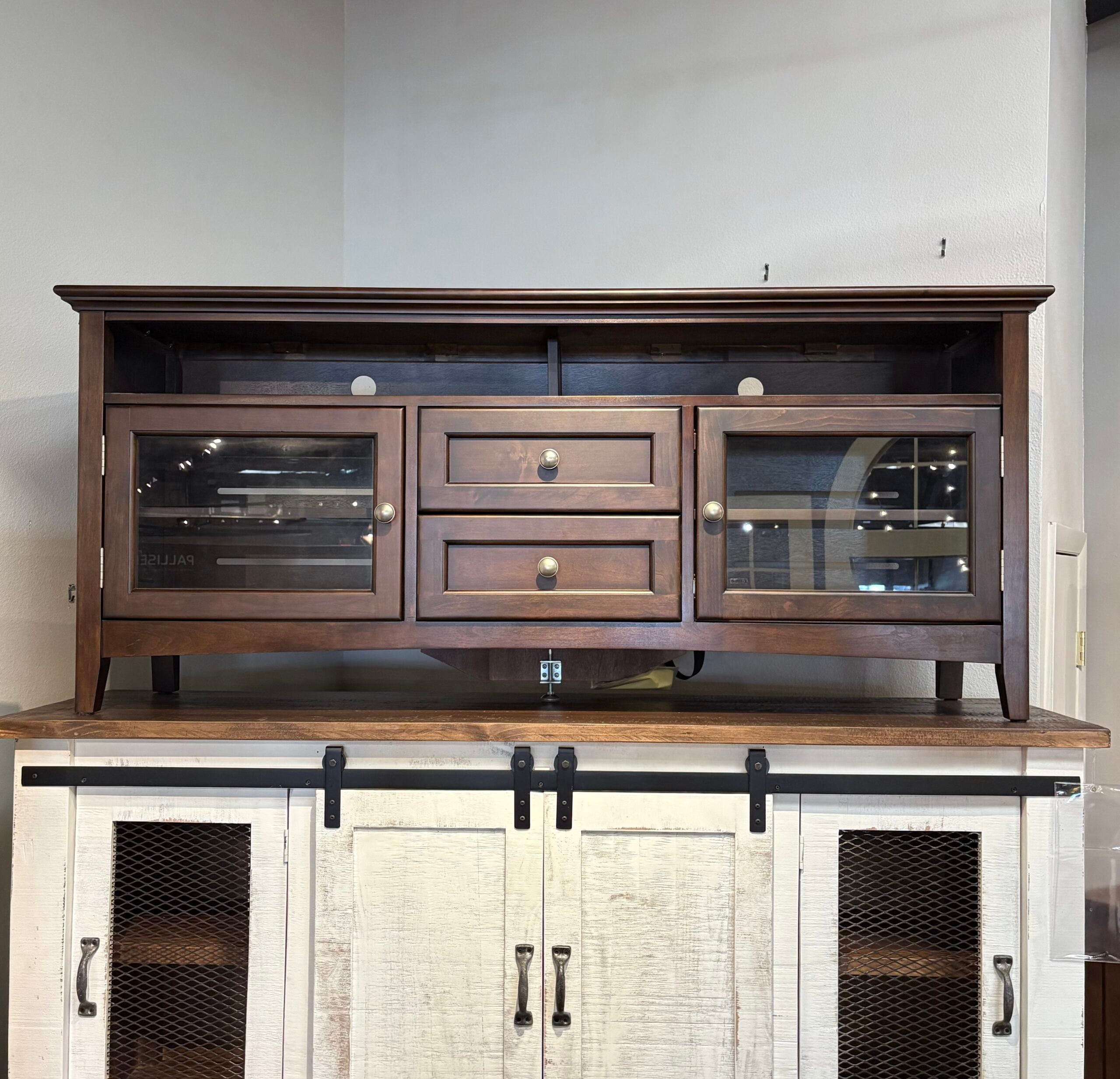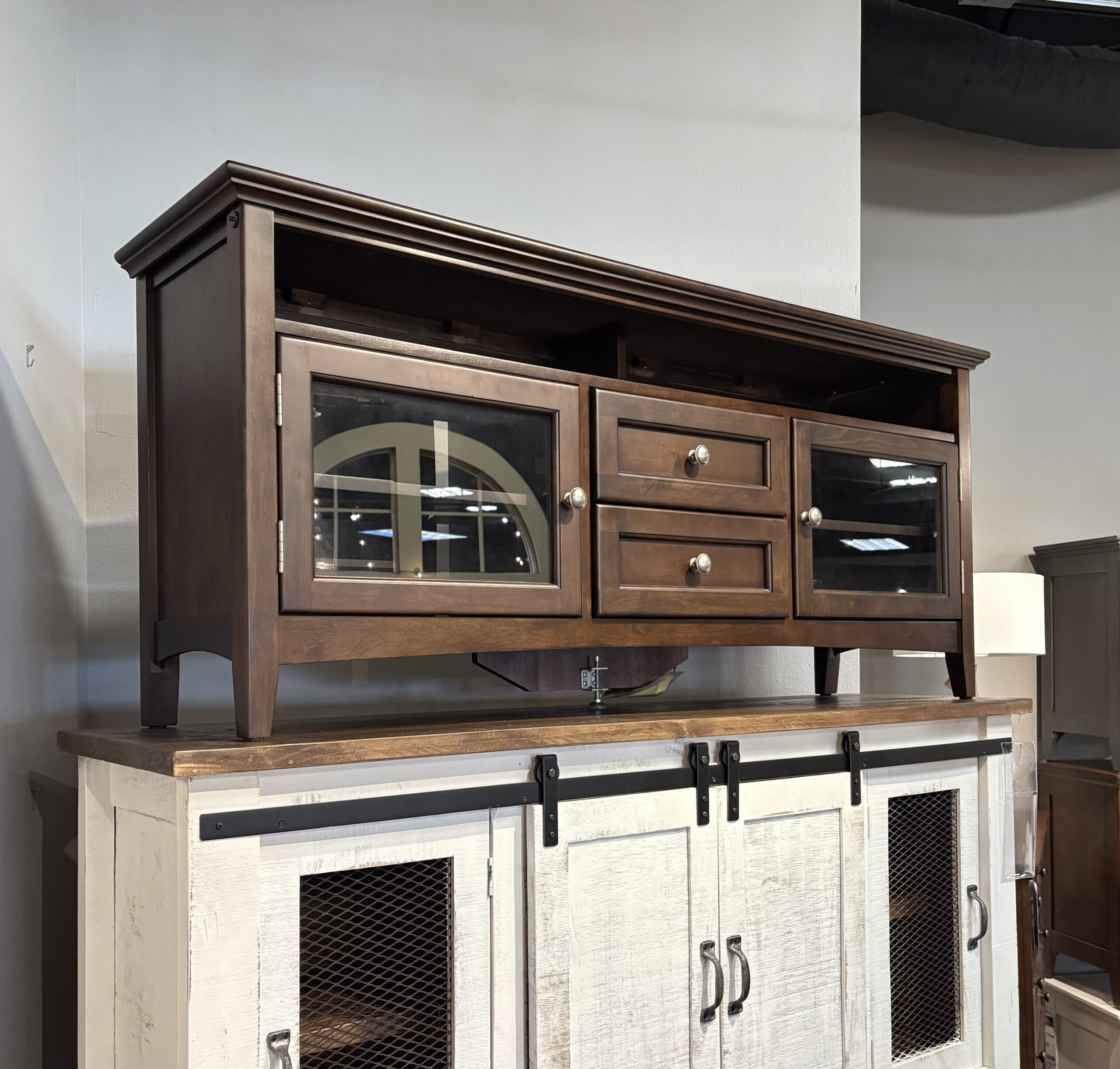 This media console features solid alder hardwood with a Caffè finish and English dovetail drawer construction