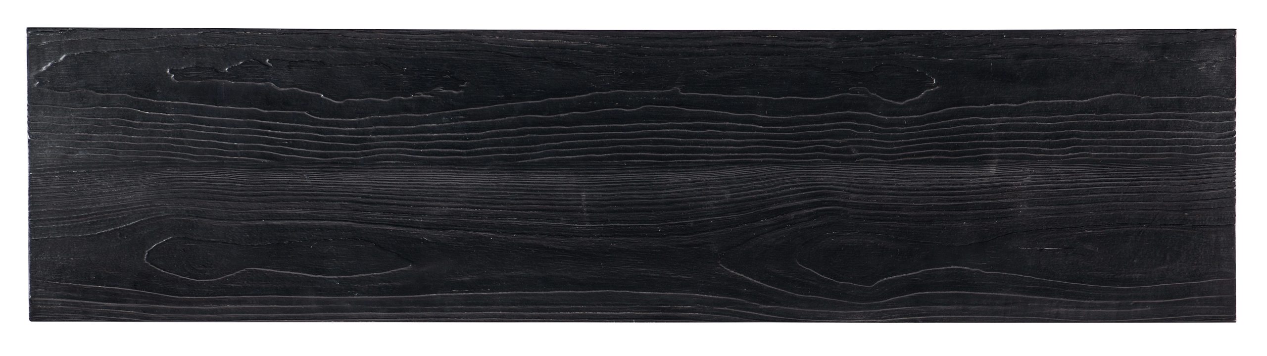 With the aura of a rustic mountain cottage, the Linville Falls Server has four wood-framed doors with seeded glass inserts and two adjustable shelves behind each pair of doors. Crafted of Pine Veneers, the Server has a charred black finish achieved through Shou Sugi Ban, a Japanese technique that creates a look resembling burnt wood. The interior is finished in Mink, a soft smoked gray. Textured metal par pulls are in an antique pewter finish.