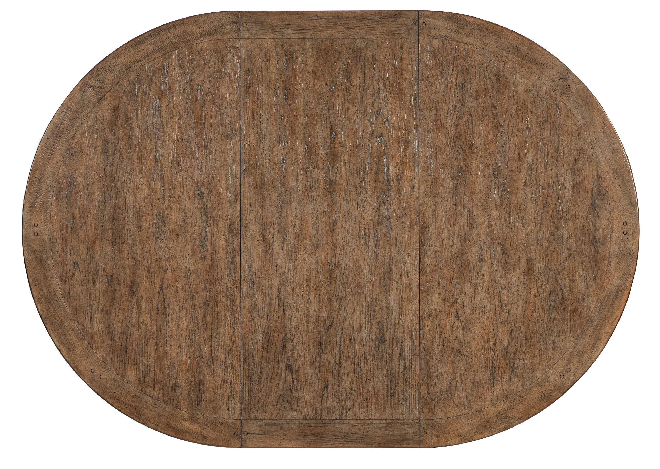 Combining the time worn white Daisy finish on the base and the warm Honey finish in a soft brown tone on the top, the Americana Round Pedestal Dining Table harkens back to a simpler, more genteel time. Crafted of Oak Veneers with a Solid-Wood Edge Top, it has a carved pedestal base. With the 22-inch leaf in place, the table extends to 76 inches round and accommodates up to two coordinating benches and two armchairs and up to 8 coordinating armchairs or side chairs. Without the leaf, it accommodates up to 6 coordinating arm or side chairs.