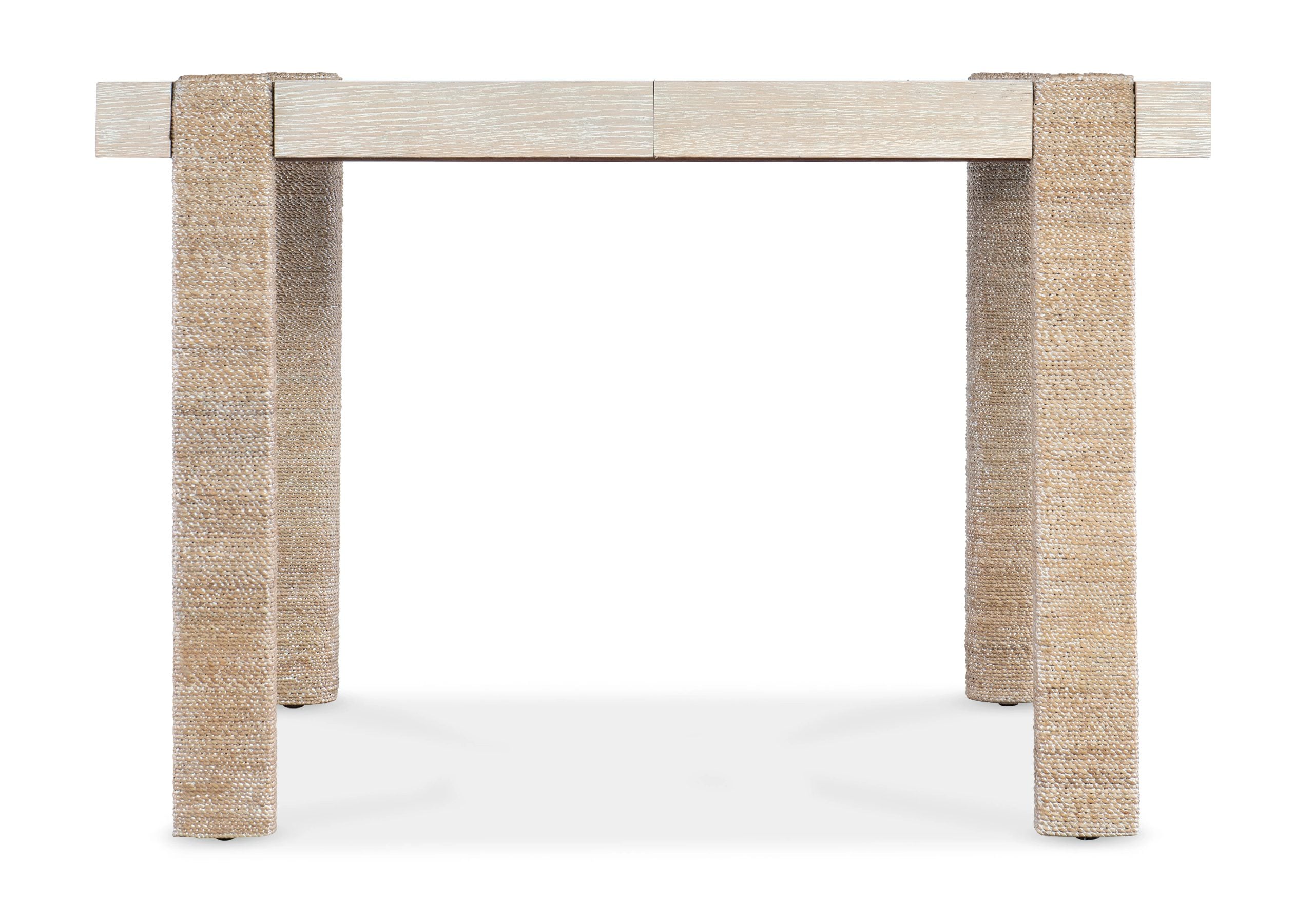 | One 22-inch leafTable extends to 66-inches long with leaf in placeRectangle shapeRope wrapped legsFinish: Natural light wood finish with rope-wrapped legs. Transparent finishes reveal a higher degree of color and grain variances, creating an irresistible | Yes |