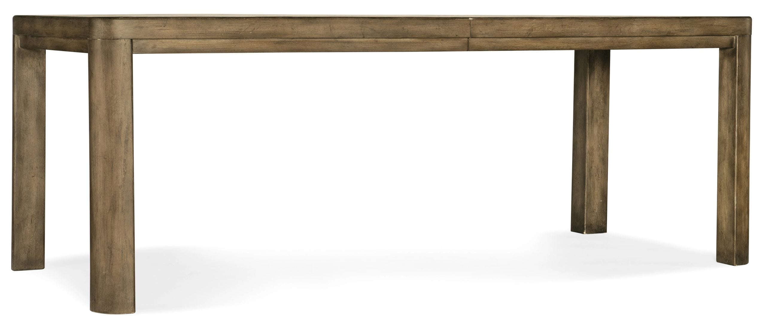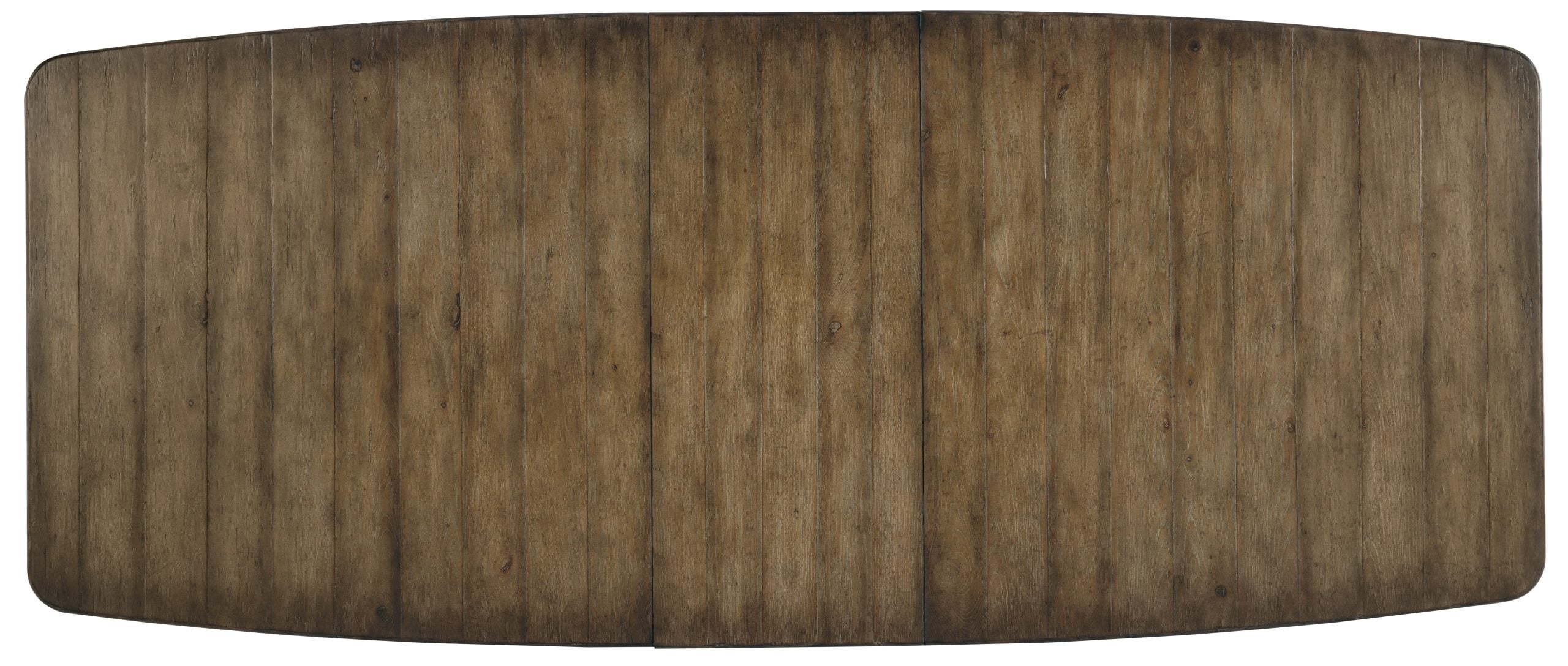 This quintessential farmhouse table is equally at home in coastal, mountain, modern and updated traditional settings. Crafted of Pecan Veneers with a Solid Wood edge top, the table is finished in Cliffside, a rich dynamic brown finish with light burnishing on the edges. Featuring one 18-inch leaf, the table extends to 100 inches long with the leaf in place to accommodate up to 2 arm chairs and 8 side chairs. Without the leaf, it accommodates up to 2 arm chairs and 6 side chairs.
