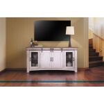 70″ TV Stand w/4 doors & Shelves inside 1. Featuring 100% solid pine. 2. Antique white finish on base, natural pine on top. Multi-step nitrocellulose lacquer finish. Primed to avoid yellowing on knots. 3. Barn doors with functional rolling mechanism add a unique look. 4. One fixed shelf behind all doors. Back panel includes wire-management grommets to organize cables of components. 5. Side doors feature metal mesh on panels add rustic industrial appeal. 70 x 19 x 34-3/4