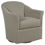 This fully upholstered swivel chair has a rounded back and flared arms. The upholstery is tailored with no welting to create a flowing contemporary silhouette. The swivel glide movement adds to the comfort and utility. Width: 33.50 Depth: 34.50 Height: 35.00 Arm height: 27.00 Inside seat width: 21.00 Inside seat depth: 22.00 Seat height: 20.50 Inside back height: 14.50