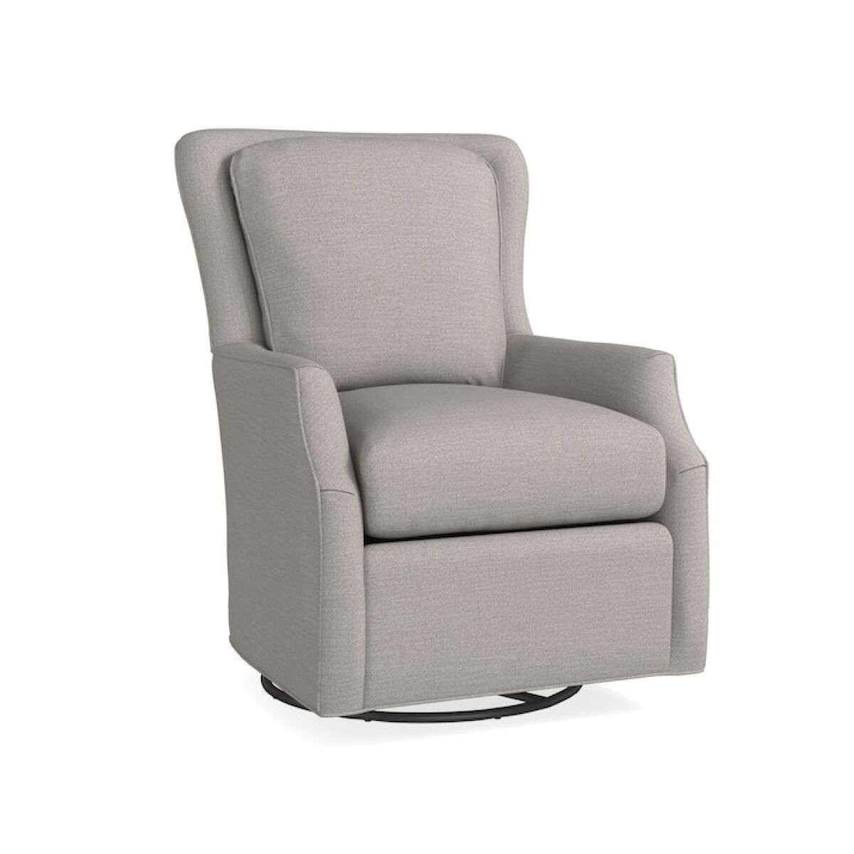 Don’t be surprised when the Kent Swivel Glider fits perfectly into your space. This transitionally styled chair features a comfort-enhanced, semi-attached back and boxed, welted seat cushions plus tapered, set-back arms and tapered, wood legs. Height 40″ Width 29″Depth 35″ Weight 107 Lbs