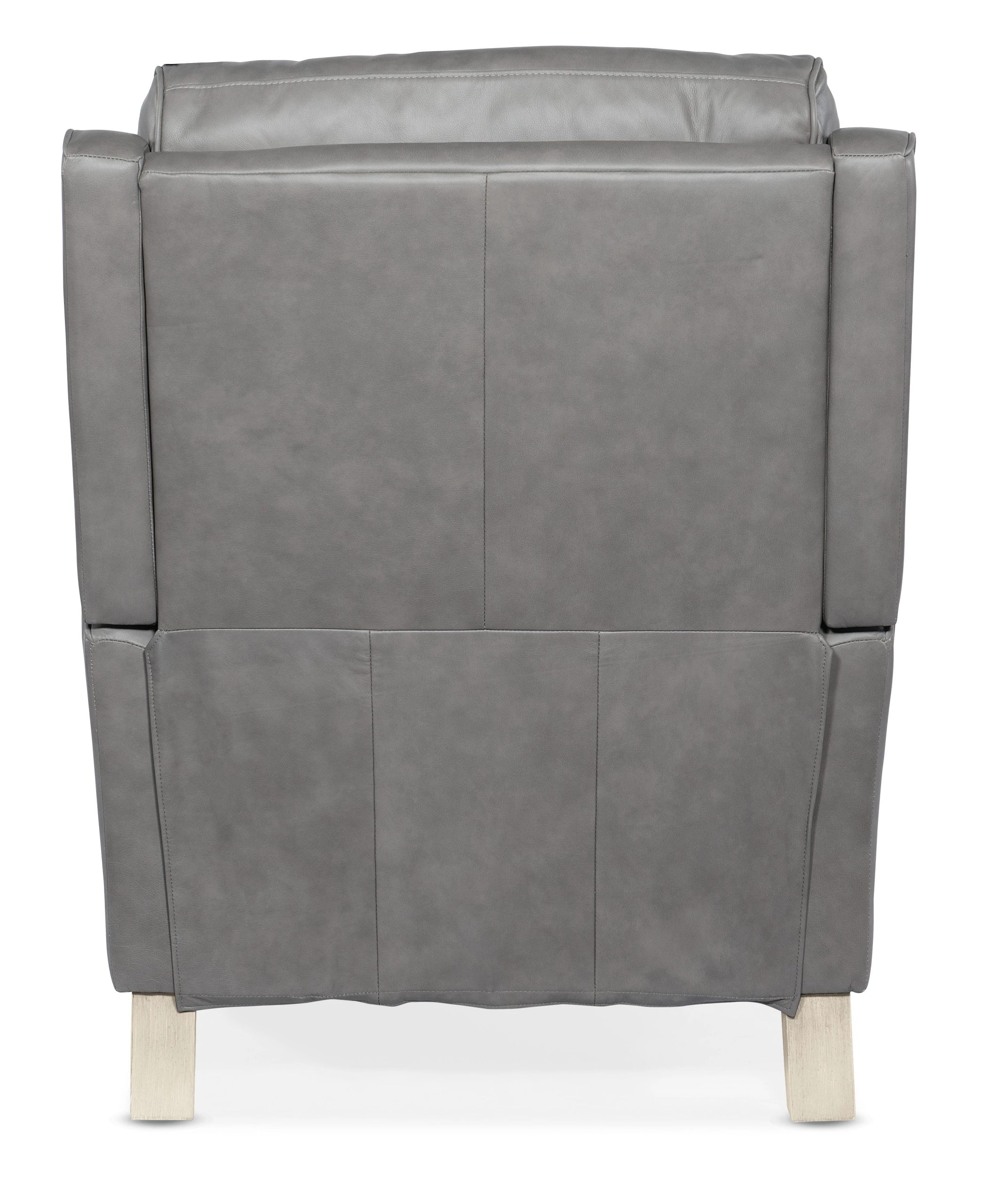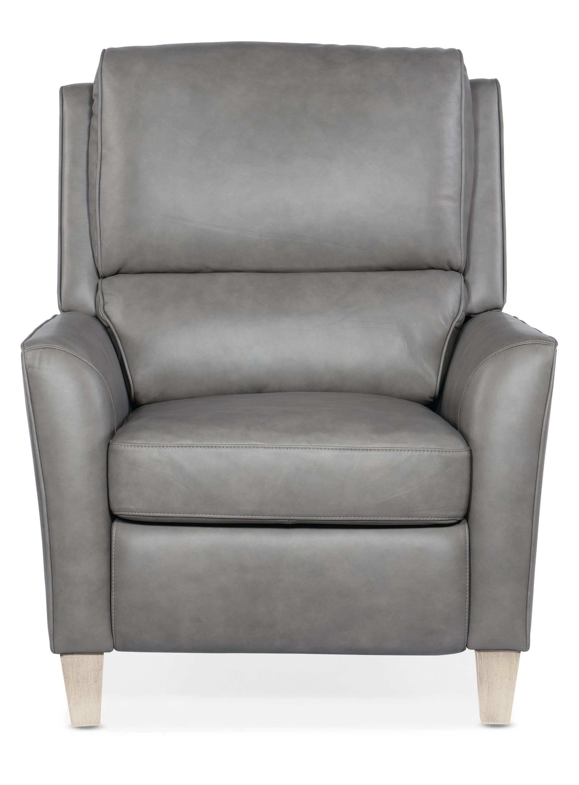 In a light and airy leather-and-finish combination, the Dunes Power Recliner with Power Headrest is as relaxing as an ocean breeze. The stylish silhouette features tapered wood feet in a white finish, a bustle style back and flared arms, covered in the quality semi-aniline top grain Aline Light Gray leather. Includes USB port to charge your device while you relax.