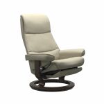 Soft and timeless. The Stressless View has ample cushioning, while retaining a timeless and modern cushion design with sleek contours. Fitted with a longer and slimmer back, this recliner is great for those of us who need some extra length in the back. It also has an elegant and comfortable neck support, which can be adapted to users of various height.
