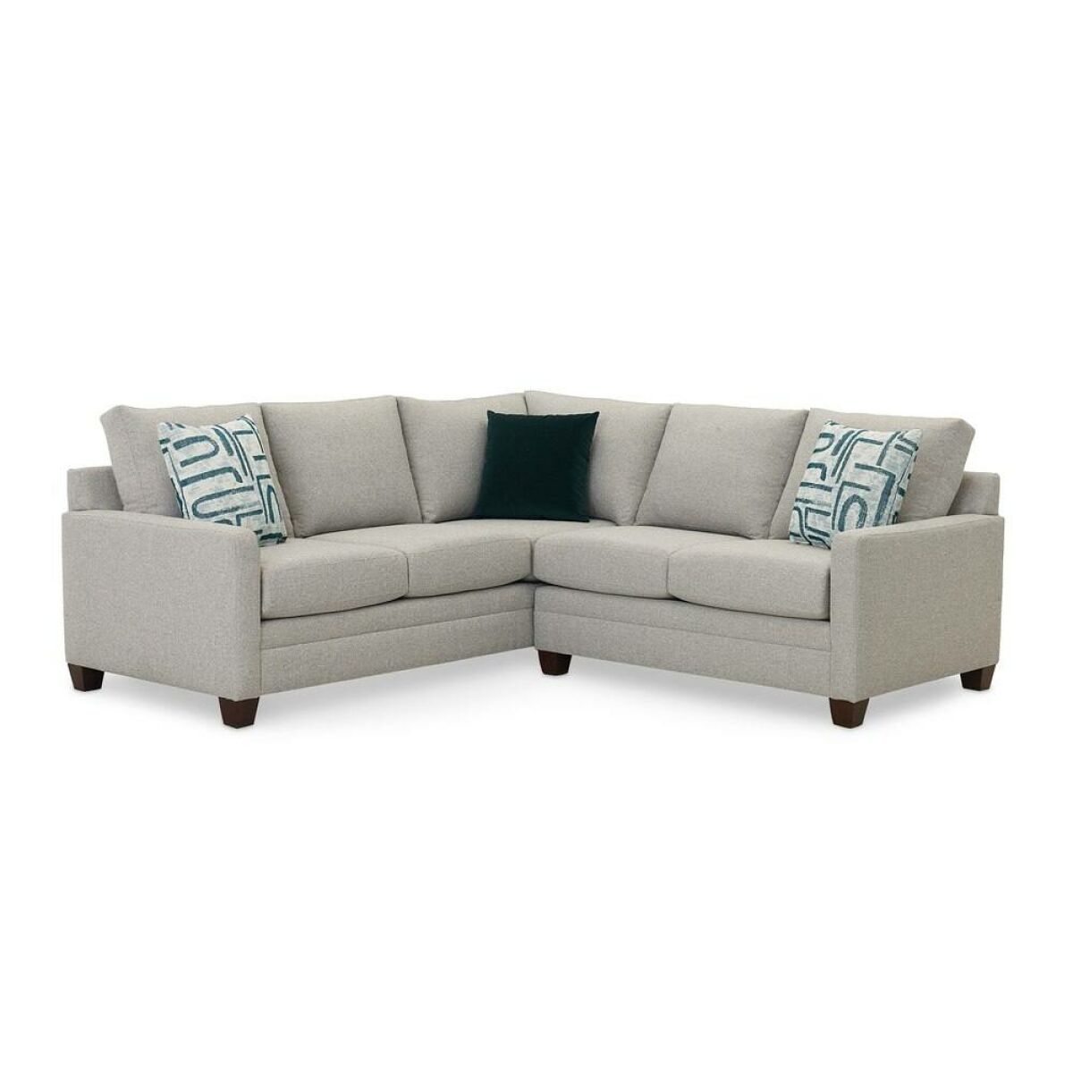 CU.2 L-Shaped Sectional Moderately scaled domestic upholstery collection that features a choice arm styles and features a loose box back, top stitched seat cushions and tapered legs available in a choice of finishes. Optional nail head trim and finishes are available. Height Over All: 37″ Depth Over All: 88″ Width Over All: 90″