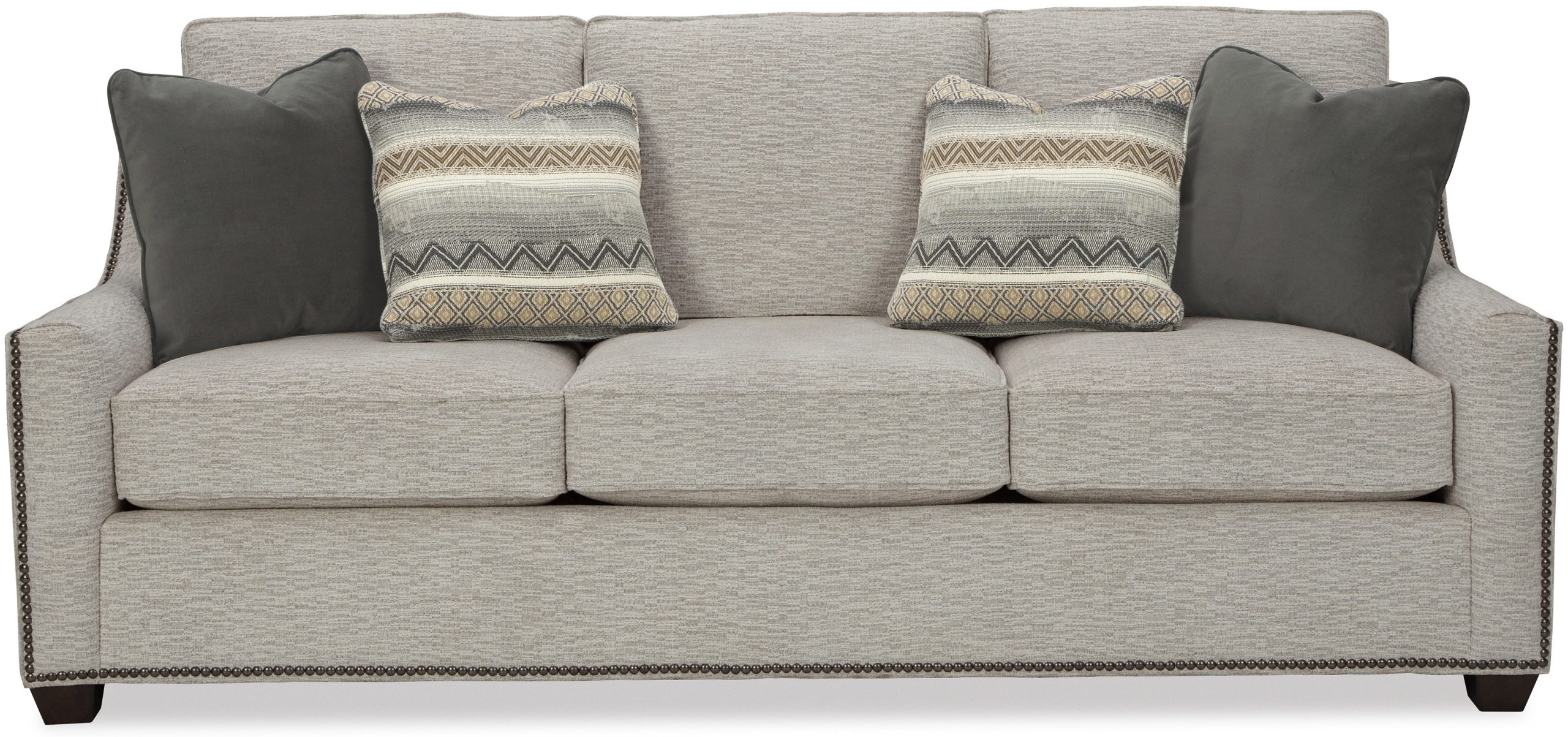 A showstopping style with so many lux details deserves a special place in your home. This sofa features loose box border backs and nail head trim that frames the piece on the arms and base. 2 pairs of toss pillows, low block feet and standard with our Comfort Soft seat cushions. Matching loveseat, Chair 1/2, and Ottoman also available. Also available without nail head trim.