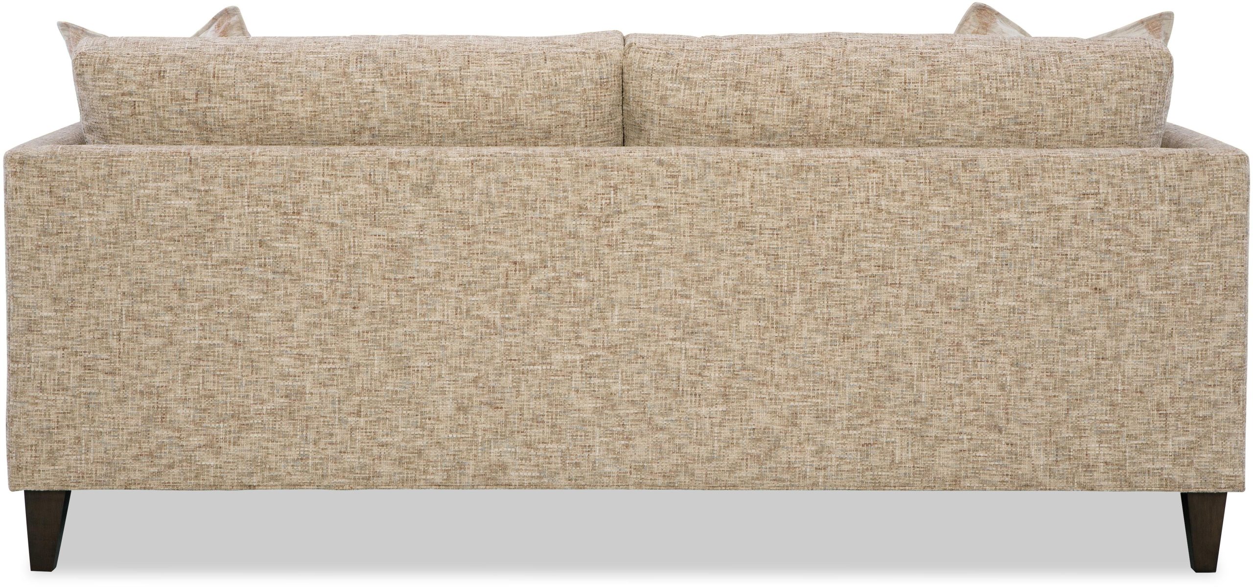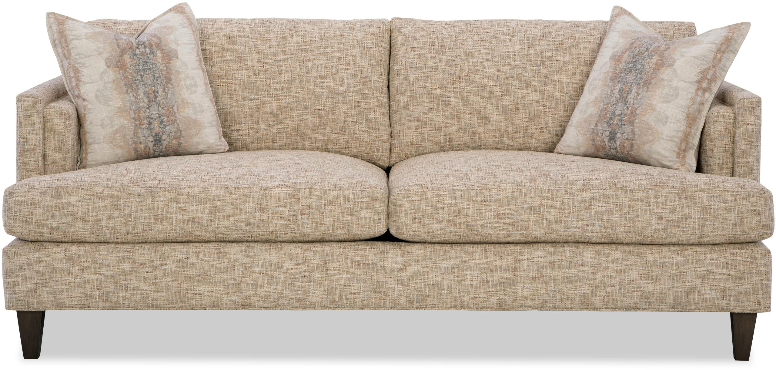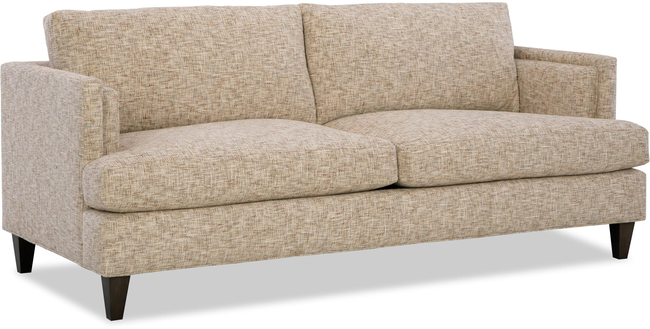 Modern and Casual, this sofa has great architectural lines combined with plush comfortable seating. It features unique inset track arms, tapered legs, and wide Blend Down seat cushions. French seamed overall. Loose box border backs. Standard with two flanged toss pillows. Also available are the matching chair 1/2, ottoman and sectional.