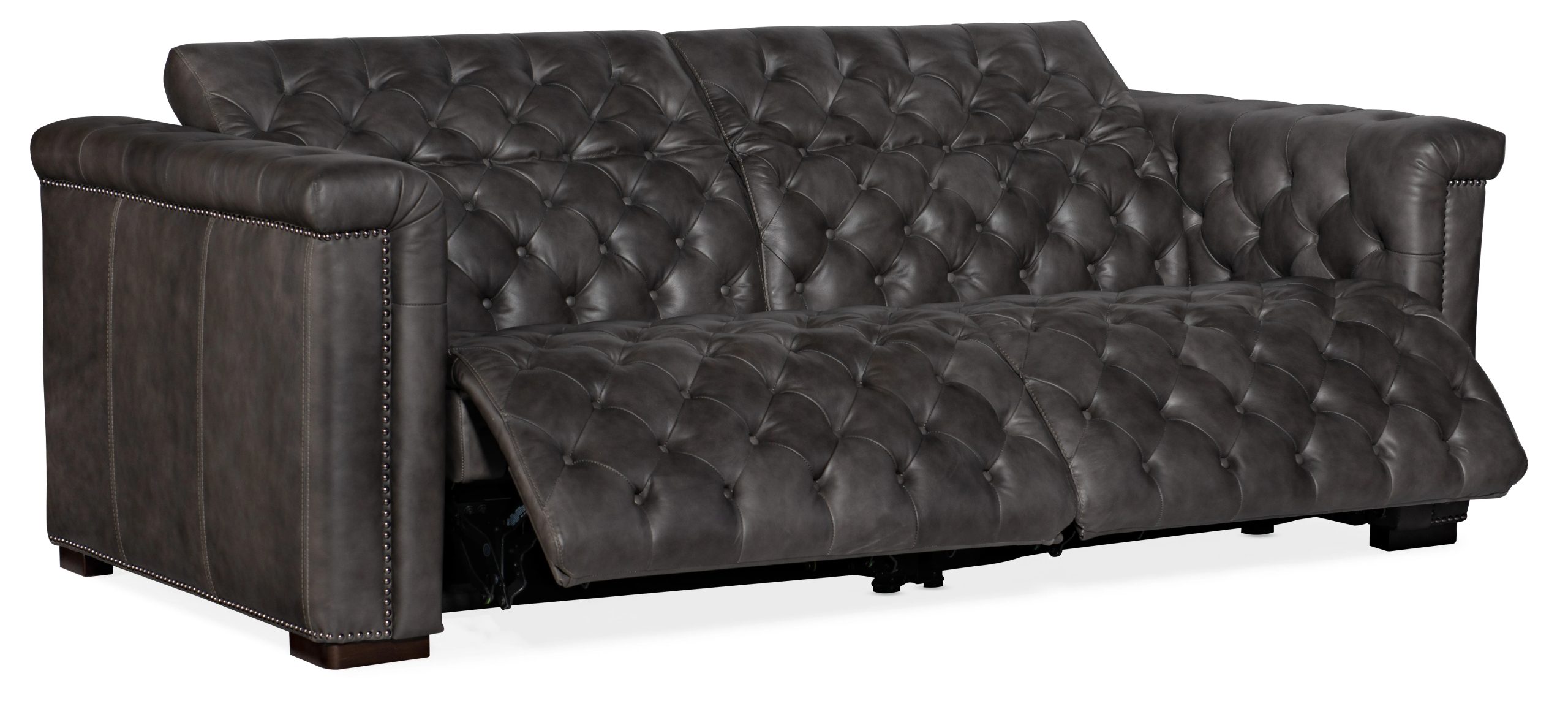 | Can be used alone as a sofa or combined with other sectional piecesTraditional stylingButton tuftingNailhead trimPower reclinePower headrestFinished Top Grain Leather with SplitFinish: Coffee brown dark wood finish | Yes |
