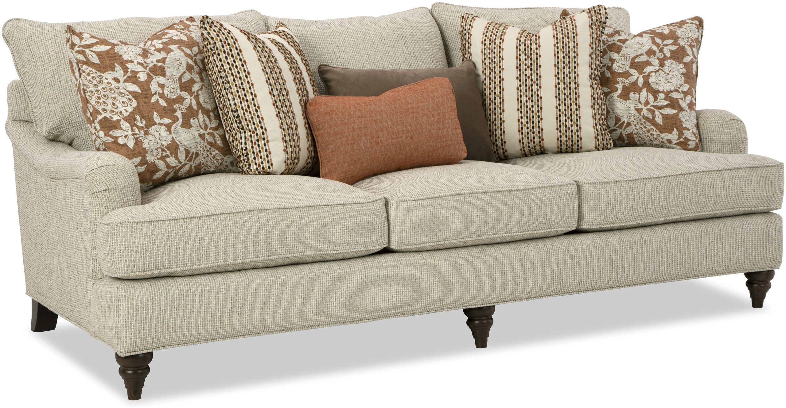 Paula says you can never have too many pillows on a sofa, so she created this beauty with 6 accent pillows to mix and match fabrics any way you like! At 98” long, there is plenty of room to stretch out or share the sofa with family. It features 3 Down-Blend seat cushions and 3 loose back pillows, as well as turned legs and English arms. Also available are the matching loveseat, chair & 1/2, and ottoman.