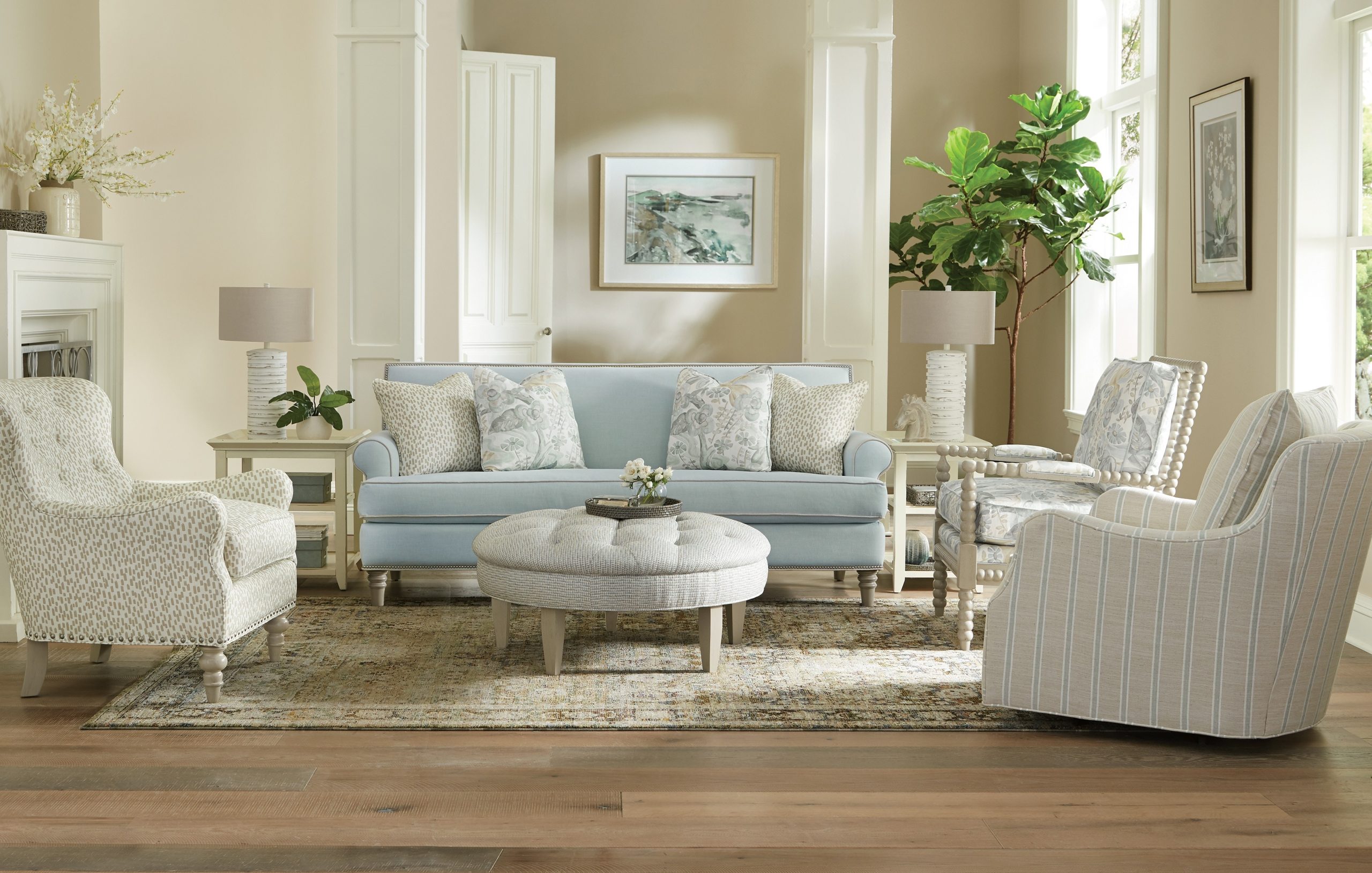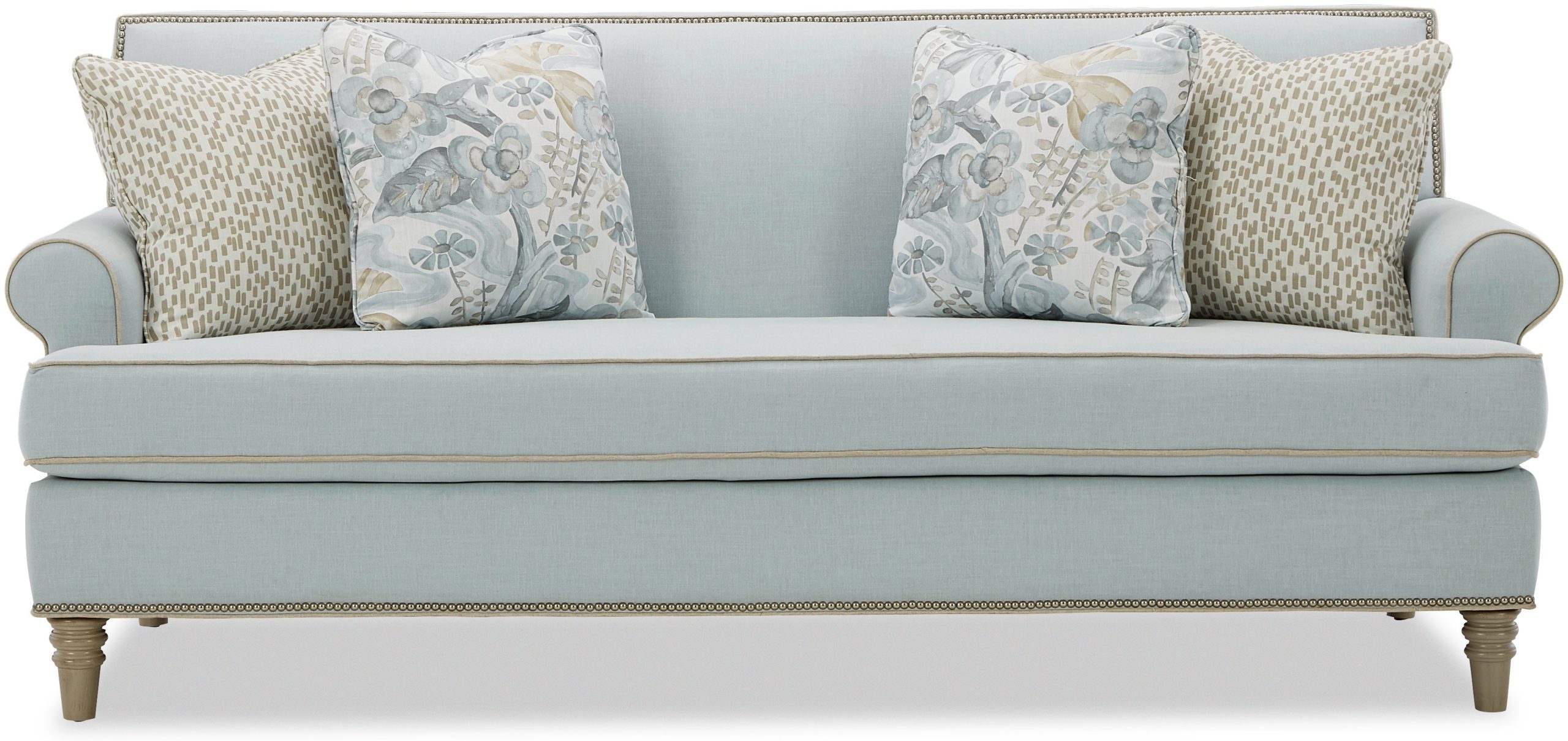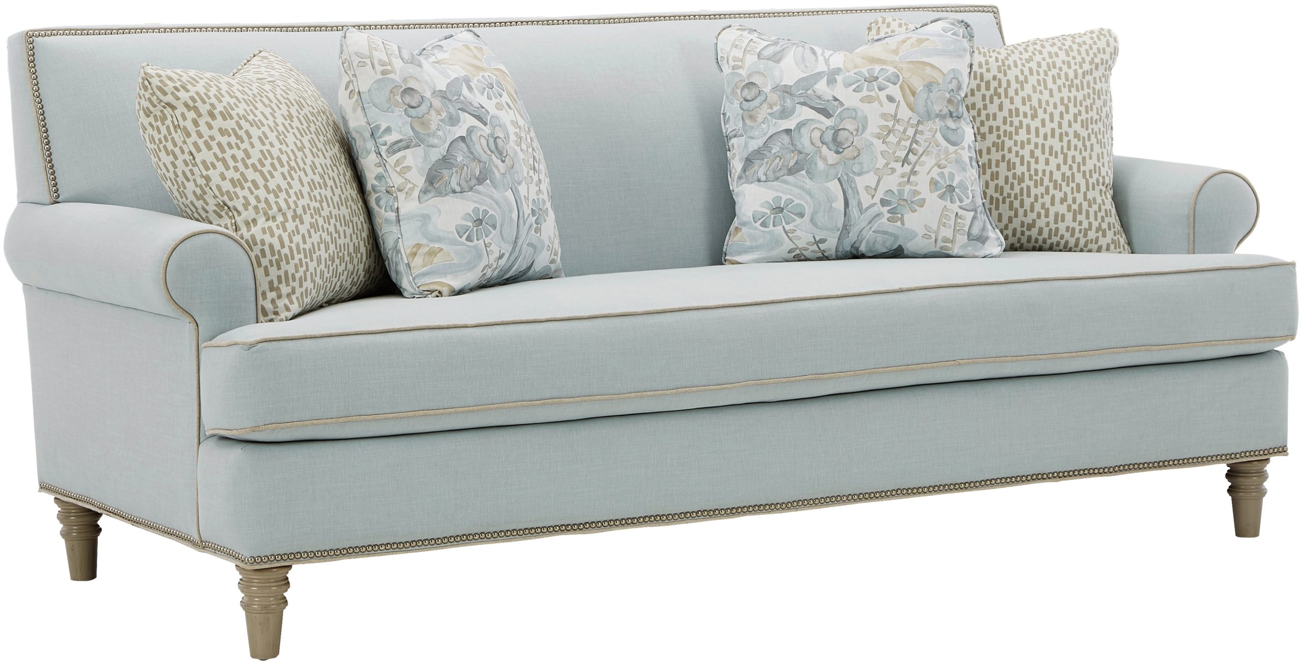 You’ve heard of a showstopper? The show will definitely stop when your guests get their first look at this stunning sofa from the Paula Deen Home collection! The clean, transitional styling of this sofa is accented with gorgeous nail head trim around the back rail and the base. It features sock arms, a tight back, bench seat, and as always, Paula’s exclusive premium Down Blend seat cushion for the ultimate in softness. Standard with 2 pairs of pillows. Also available is the matching loveseat, chair, and ottoman. Also available without nail head trim.