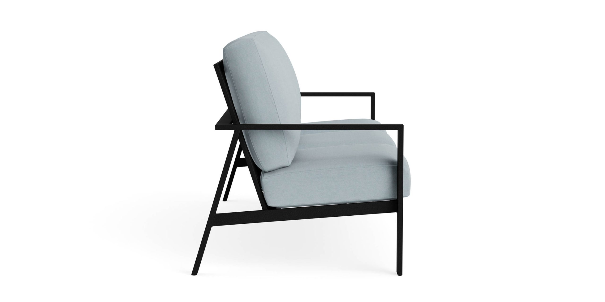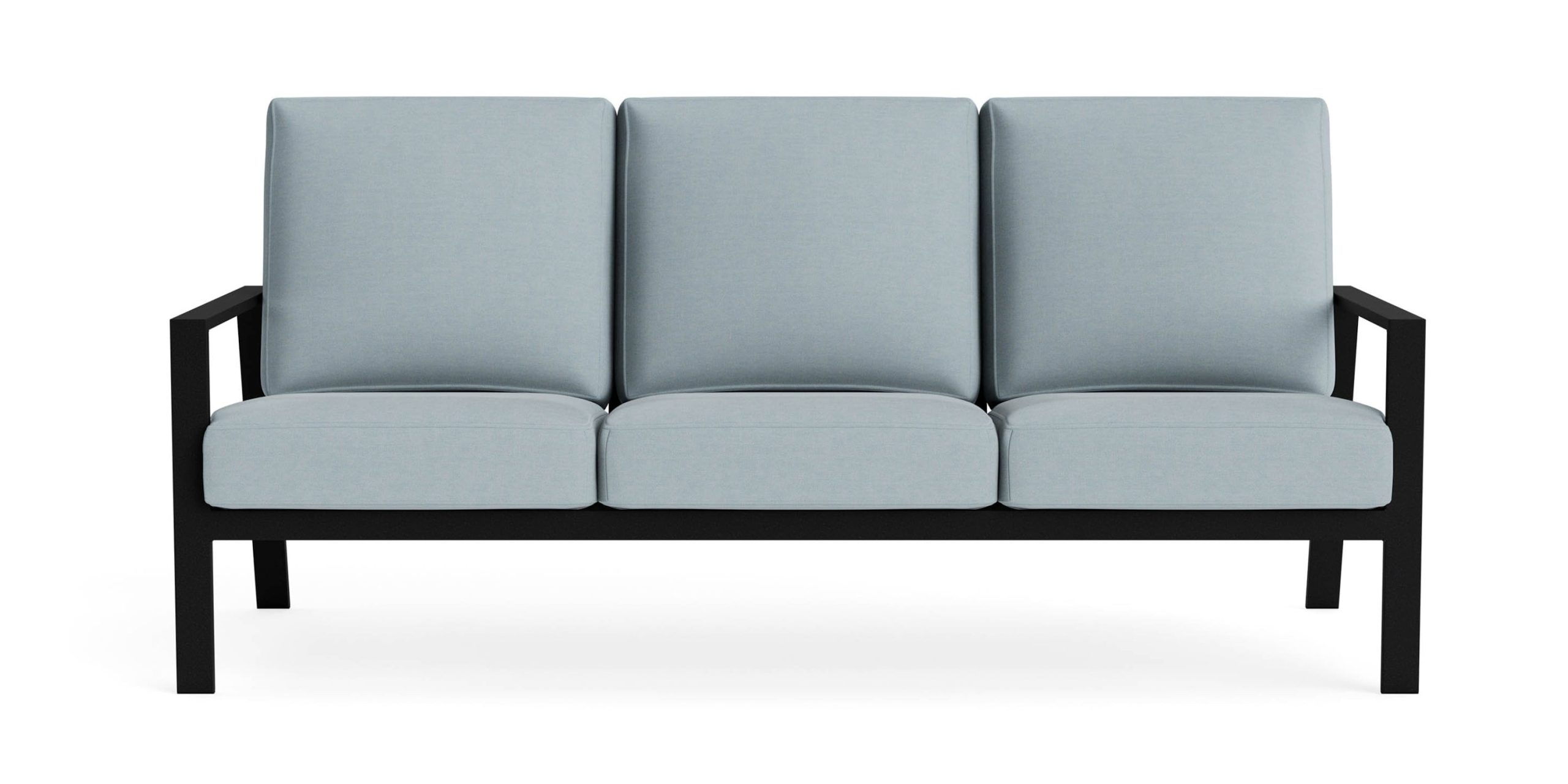 Couch your outdoor living and relaxing in a clean-lined style, thanks to the invitation of our transitional Morris Outdoor Sofa. Anchor your patio or porch gathering space with this modestly sized sofa, centering lively gatherings with family and friends around it. Or enjoy cozy evenings comfortably ensconced in its thick boxed cushions. A sling fabric seat deck provides soft support for the cushions while the wide track arm provides a perfect resting place for your drink. The sophisticated angles of the Morris sofa are hand-crafted by our Alabama artisans from commercial-grade aluminum and powder-coated for durability. Choose your preferred finish as well as the outdoor fabric that completes your vision of personal R&R.